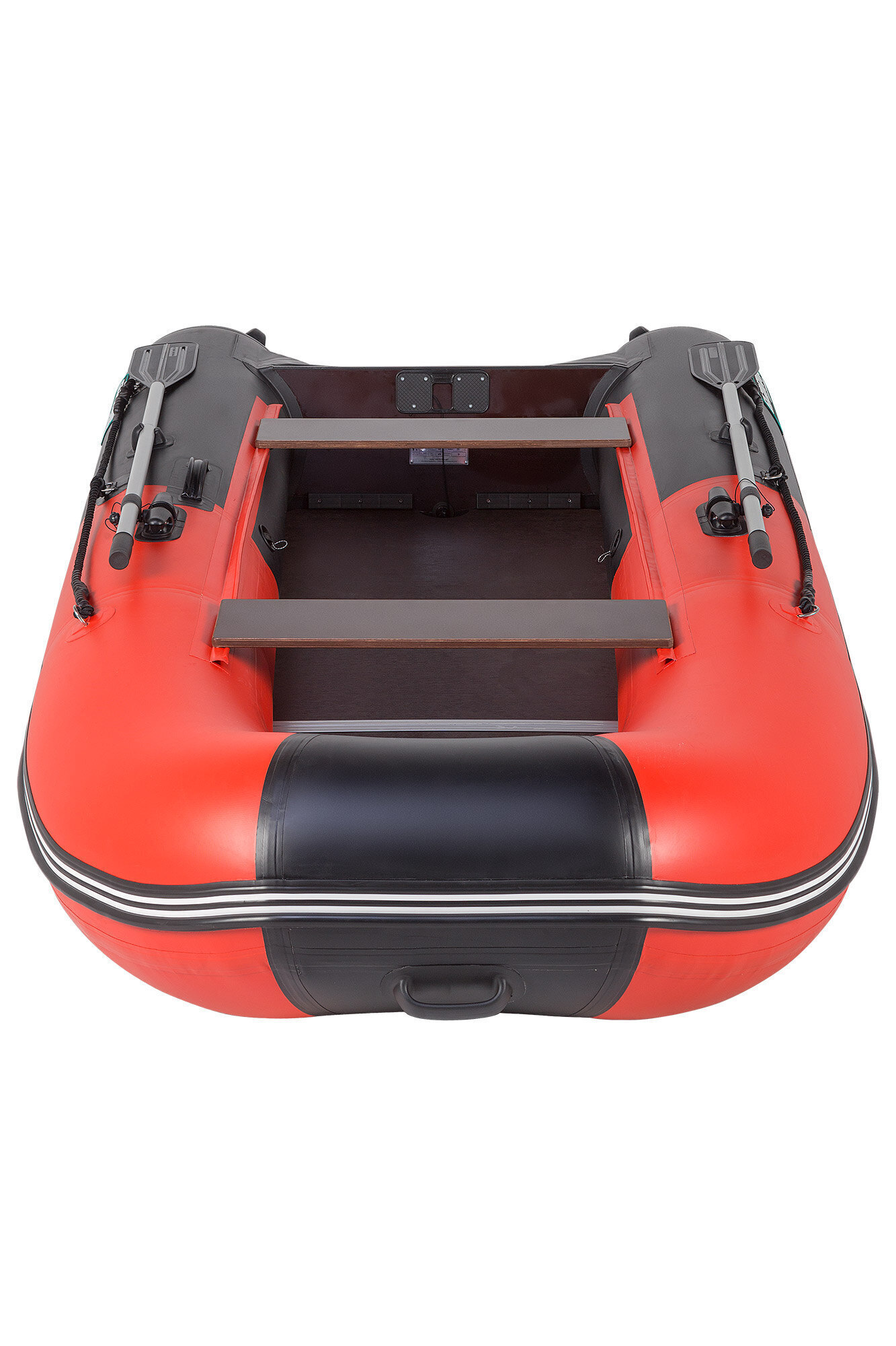 Дно — фанерный пайол с антискользящей насечкой с комплектом алюминиевых стрингеров. Самый удобный в использовании вид пола: его не надо просушивать, невозможно поцарапать или проколоть.